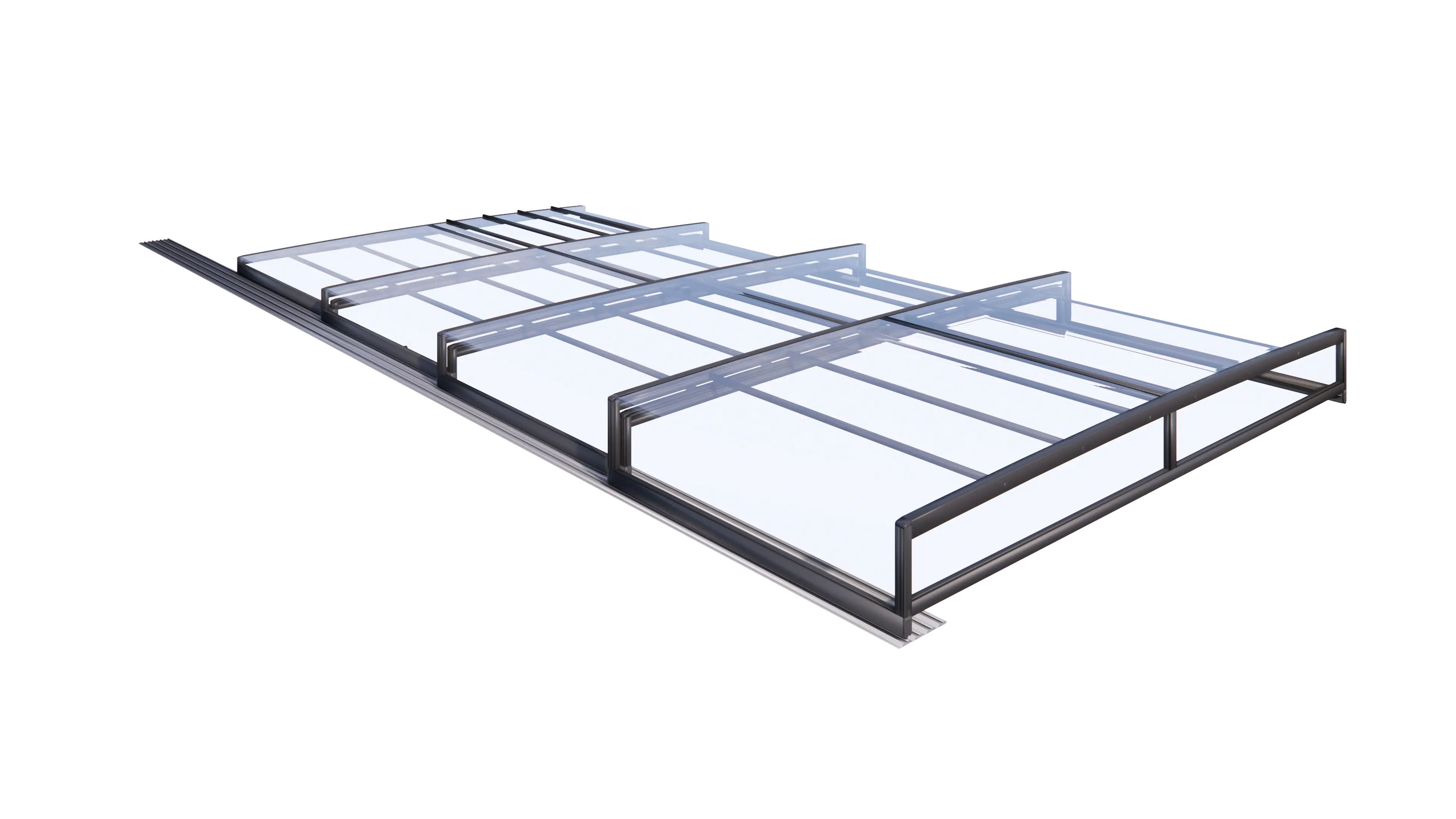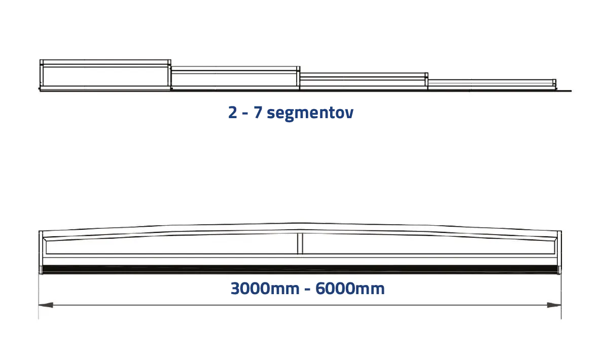 Výška zastřešení bazénu EXCLUSIVE je v nejmenším segmentu od výšky 200mm v závislosti na počtu segmentů a šířce zastřešení bazénu.